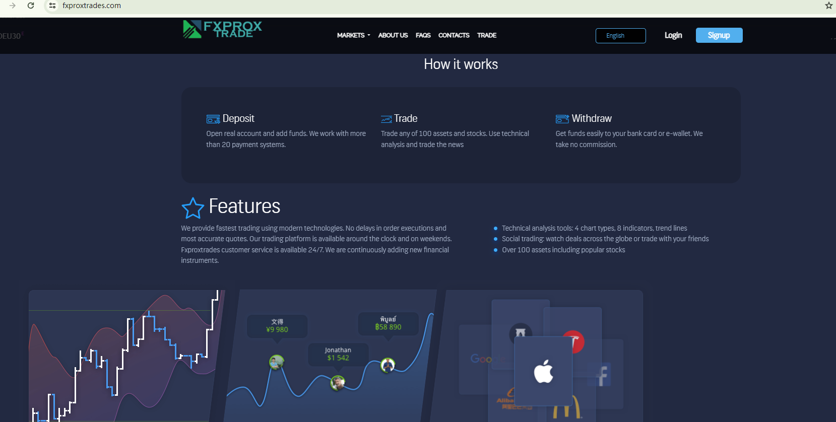 Trang web của FXPROX TRADE dường như được bảo trì kém, với một phần của nó hiển thị lỗi "404". Sự thiếu chú ý đến từng chi tiết này đặt ra câu hỏi về độ tin cậy của nhà môi giới.