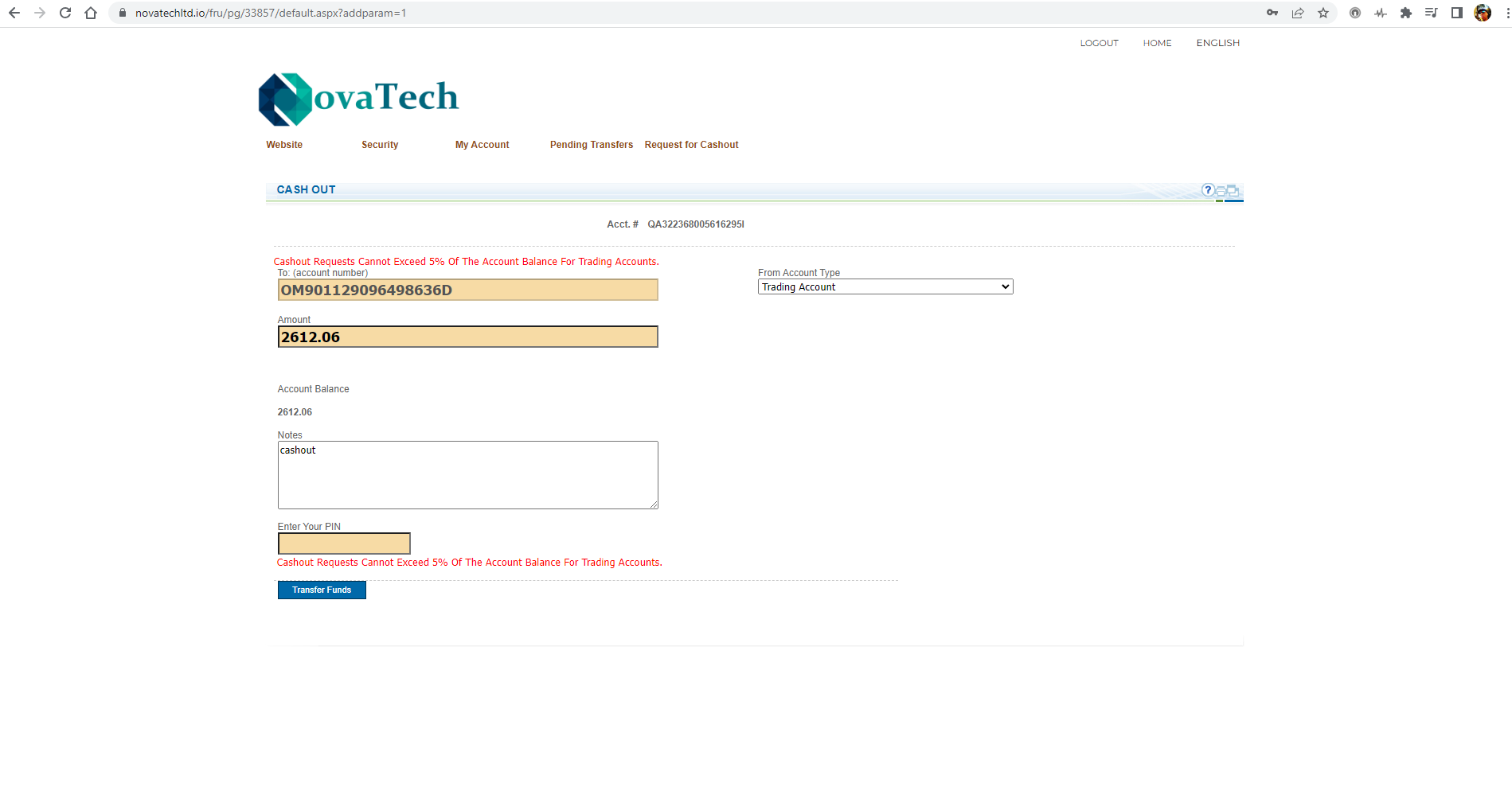 I can't withdraw my funds from NovaTech and this is BS!!! Help me get my money it's a measly $2612.06, but I want my money!