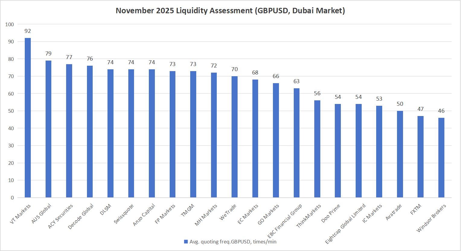 Khi điều kiện thanh khoản tiếp tục thay đổi, Tần suất báo giá trung bình vẫn là chỉ số quan trọng về chất lượng thực hiện và năng lực công nghệ trên toàn thị trường Dubai.
