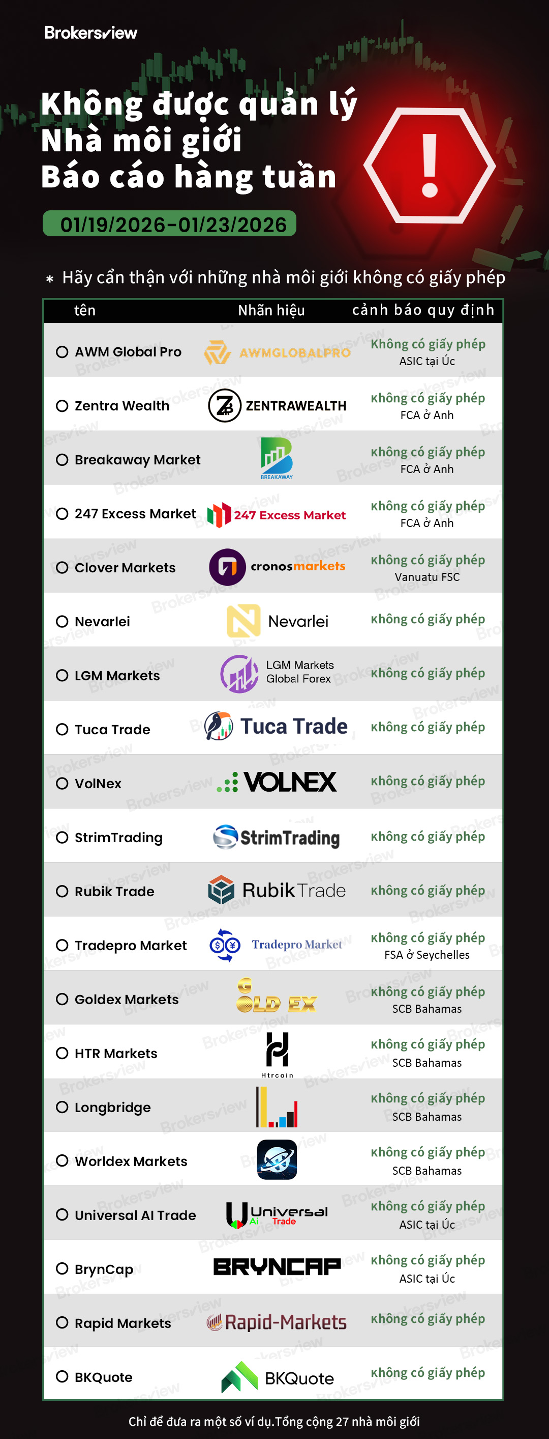 BrokersView đã vạch trần các nhà môi giới lừa đảo từ ngày 19 tháng 1 năm 2026 đến ngày 23 tháng 1 năm 2026 :
