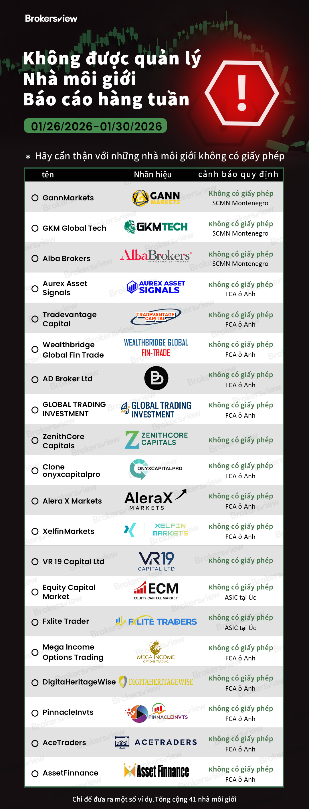 BrokersView đã vạch trần các nhà môi giới lừa đảo từ ngày 26 tháng 1 năm 2026 đến ngày 30 tháng 1 năm 2026 :