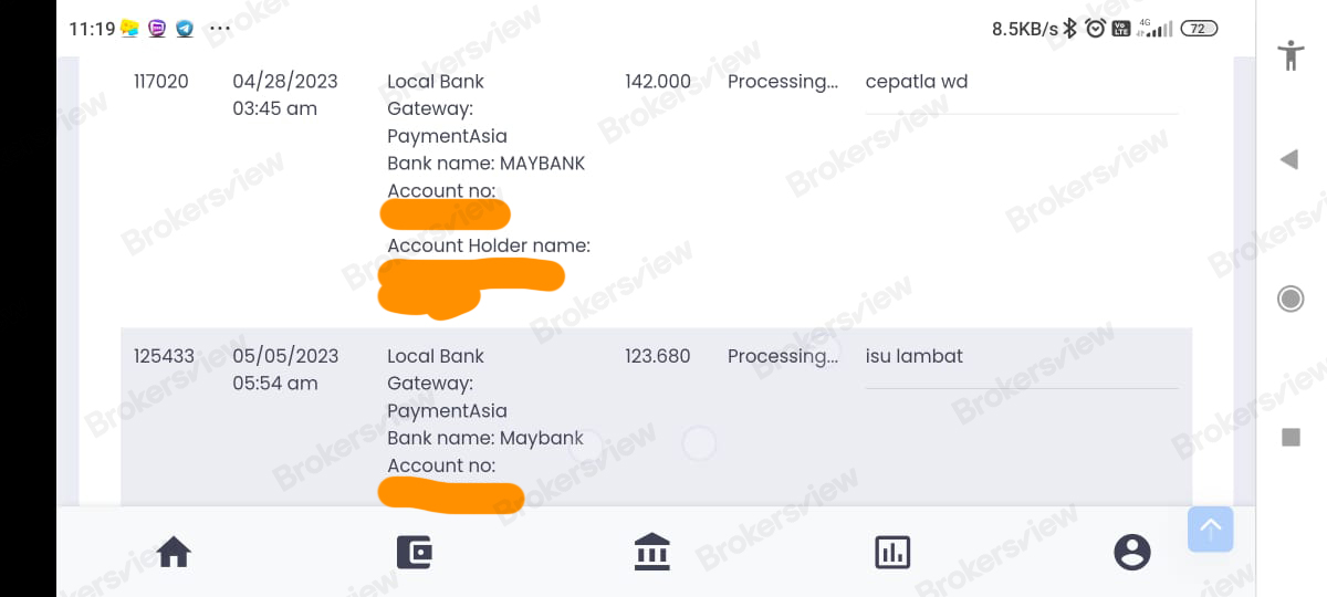 Để hỗ trợ cho những tuyên bố này, một khách hàng đã cung cấp cho chúng tôi ảnh chụp màn hình hiển thị các yêu cầu rút tiền đang chờ xử lý của anh ta.