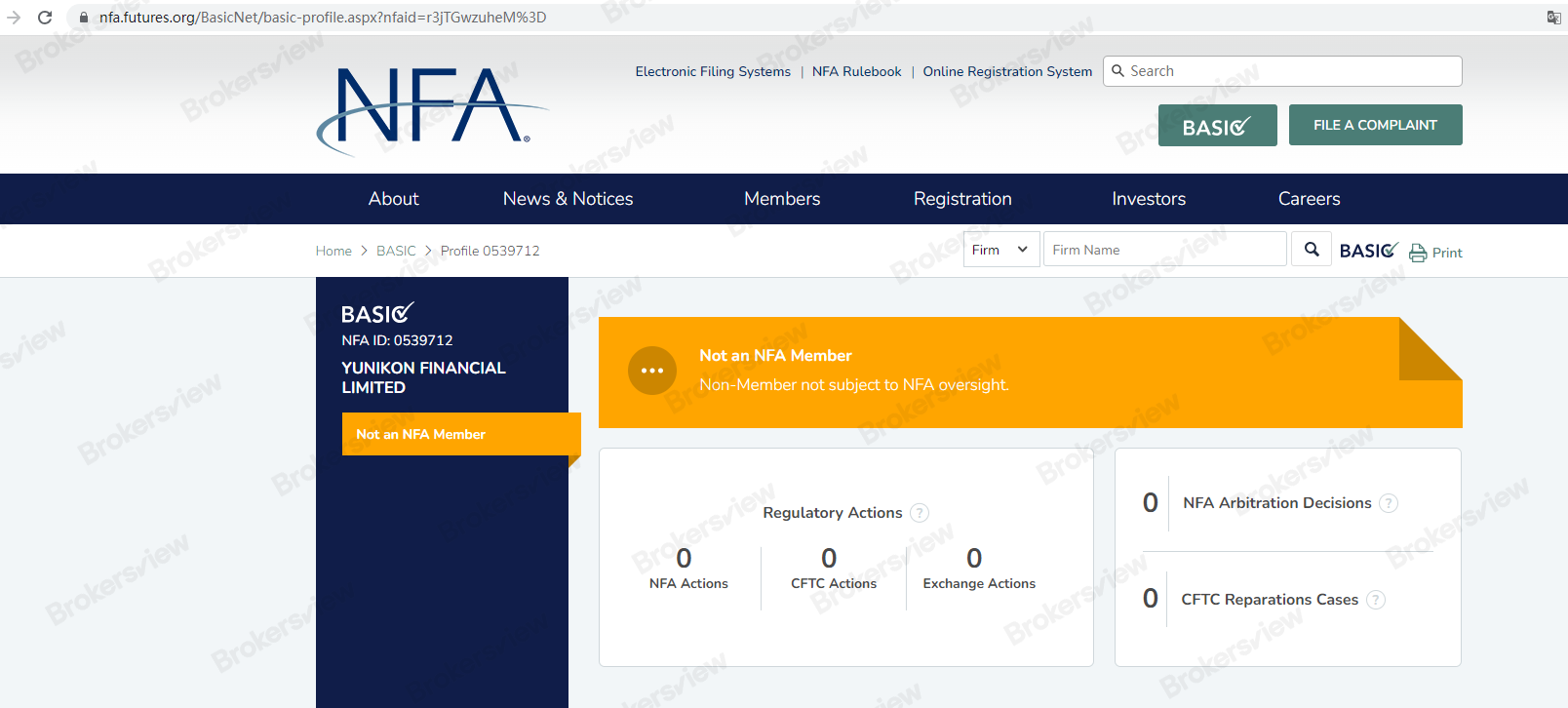 Trong nỗ lực tạo niềm tin với các nhà đầu tư, YunikonFX đăng một video quảng cáo trên trang chủ của mình để giới thiệu những lợi thế của nó. Trong video này, YunikonFX tuyên bố là thành viên đã đăng ký của Hiệp hội Hợp đồng Tương lai Quốc gia Hoa Kỳ (NFA), một cơ quan giám sát tài chính nổi tiếng được công nhận về các quy định nghiêm ngặt. Tuy nhiên, dữ liệu từ NFA cho thấy Yunikon Financial Limited, nhà điều hành của YunikonFX, không phải là thành viên của NFA và do đó không chịu sự giám sát của họ. Tương tự như vậy, tìm kiếm của chúng tôi trong sổ đăng ký của Cơ quan quản lý tài chính Vương quốc Anh (FCA) và Ủy ban giao dịch và chứng khoán Cộng hòa Síp (CySEC), nơi YunikonFX tuyên bố quy định đang chờ xử lý, cũng không mang lại kết quả nào. Điều đặc biệt đáng chú ý là cơ quan đăng ký CySEC không liệt kê bất kỳ công ty đầu tư nào có tên bắt đầu bằng chữ "Y", càng làm dấy lên nghi ngờ về các khẳng định của YunikonFX.