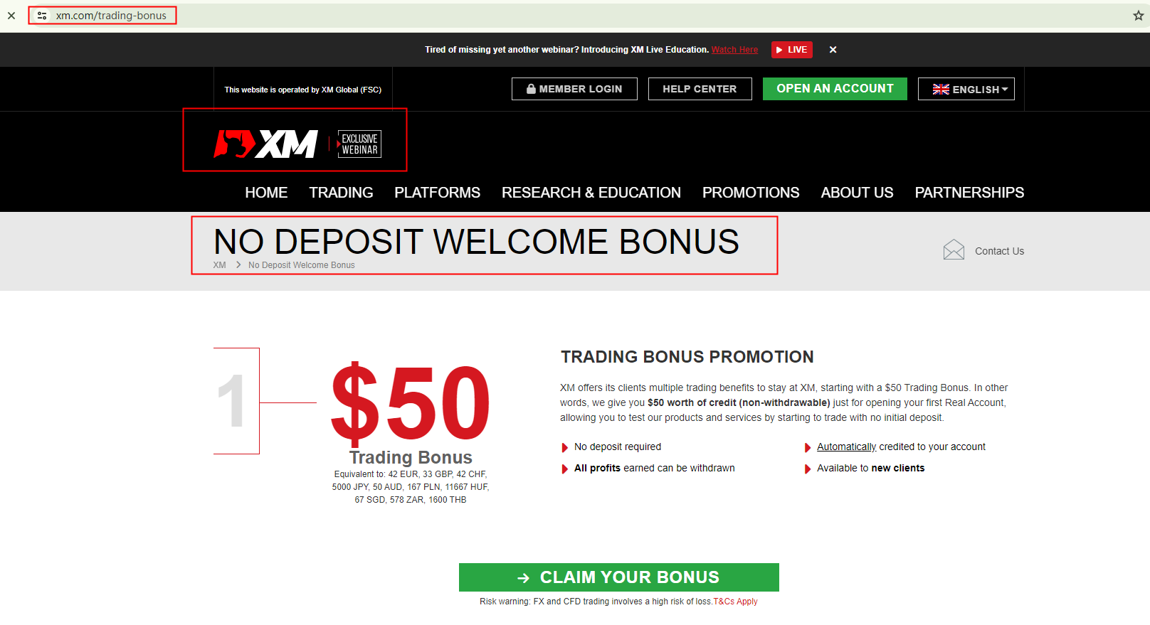Yes, XM offers a No Deposit Welcome Bonus for newcomers who haven't registered yet. In addition to this, they provide a variety of other bonuses, which can be found on their Promotions Page. For the most current and accurate information tailored to your specific situation, we recommend reaching out to their customer service. XM's live chat feature is a convenient way for investors to get the help they need.