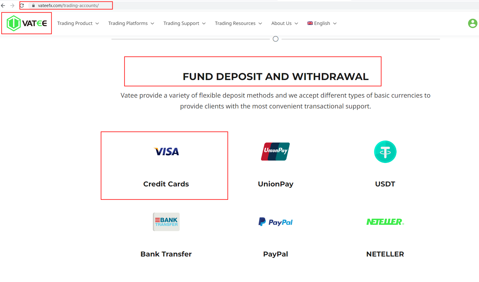 As for the question you asked, we found relevant information in the "Trading Accounts - Fund Deposit and Withdrawal". However, in order to achieve the most accurate and current answer, we recommend that you ask the official customer services directly. For more details on this broker, please check our full Vatee review.