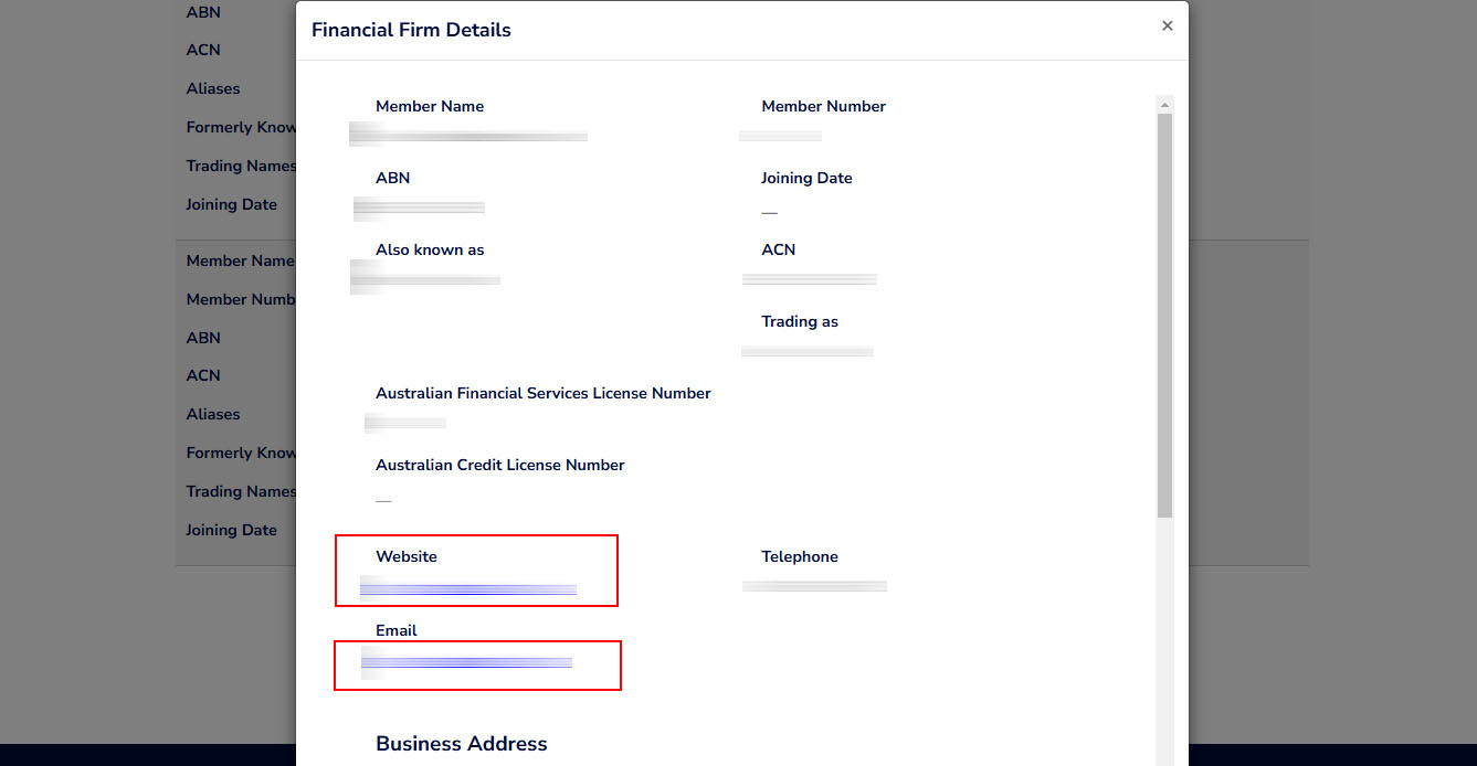 Nói chung, hồ sơ môi giới do ASIC quản lý sẽ được tìm thấy tại https://service.asic.gov.au/search/. Hãy thử tìm và kiểm tra xem thông tin có khớp với thông tin từ trang web của môi giới không.