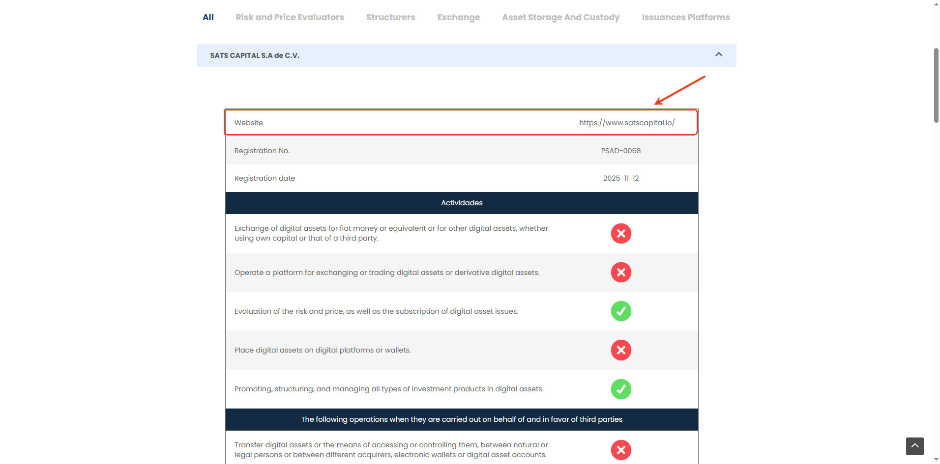 2. Sử dụng tổ hợp phím Ctrl+F để tìm kiếm tên tổ chức trên trang này: https://cnad.gob.sv/public-registry/digital-assets-service-provider/.