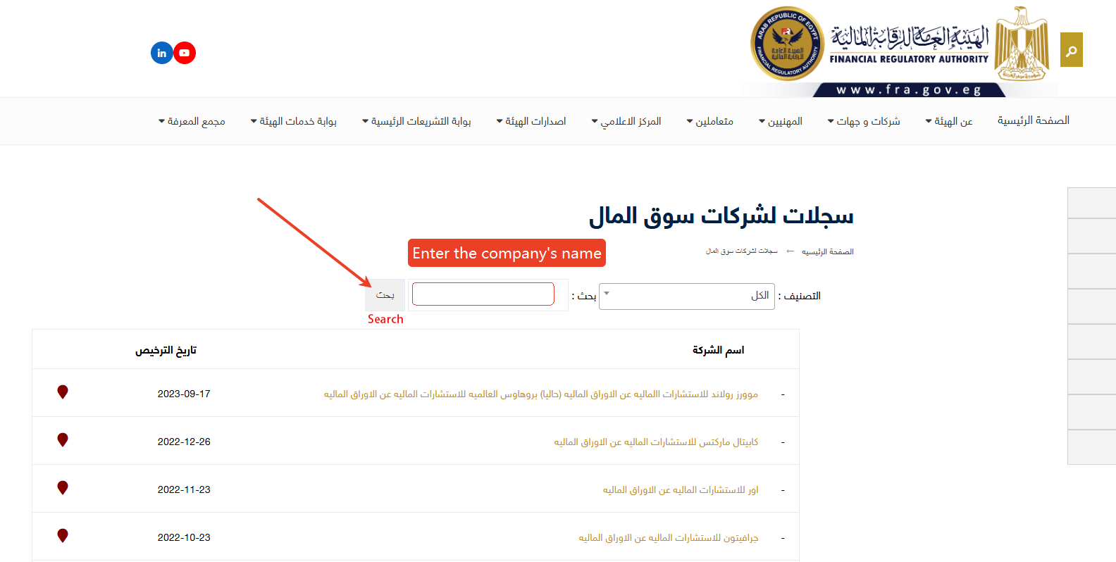 Cơ quan quản lý tài chính (FRA) được thành lập theo Nghị định của Tổng thống số (192) năm 2009 và theo Luật số (10) năm 2009. Cơ quan này thay thế Cơ quan giám sát bảo hiểm Ai Cập (EISA), Cơ quan thị trường vốn (CMA), Cơ quan tài chính thế chấp (MFA) và Tổng cục đầu tư trong việc giám sát và kiểm soát các hoạt động cho thuê tài chính và bao thanh toán (GAFI).